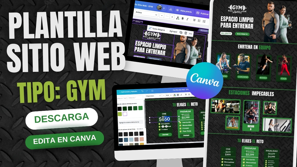 Plantilla Editable en Canva: Sitio Web tipo GYM